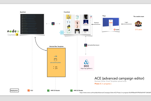 - Develops the react app for ACE that communicates with the API and the bee.io API for all email templating designs.